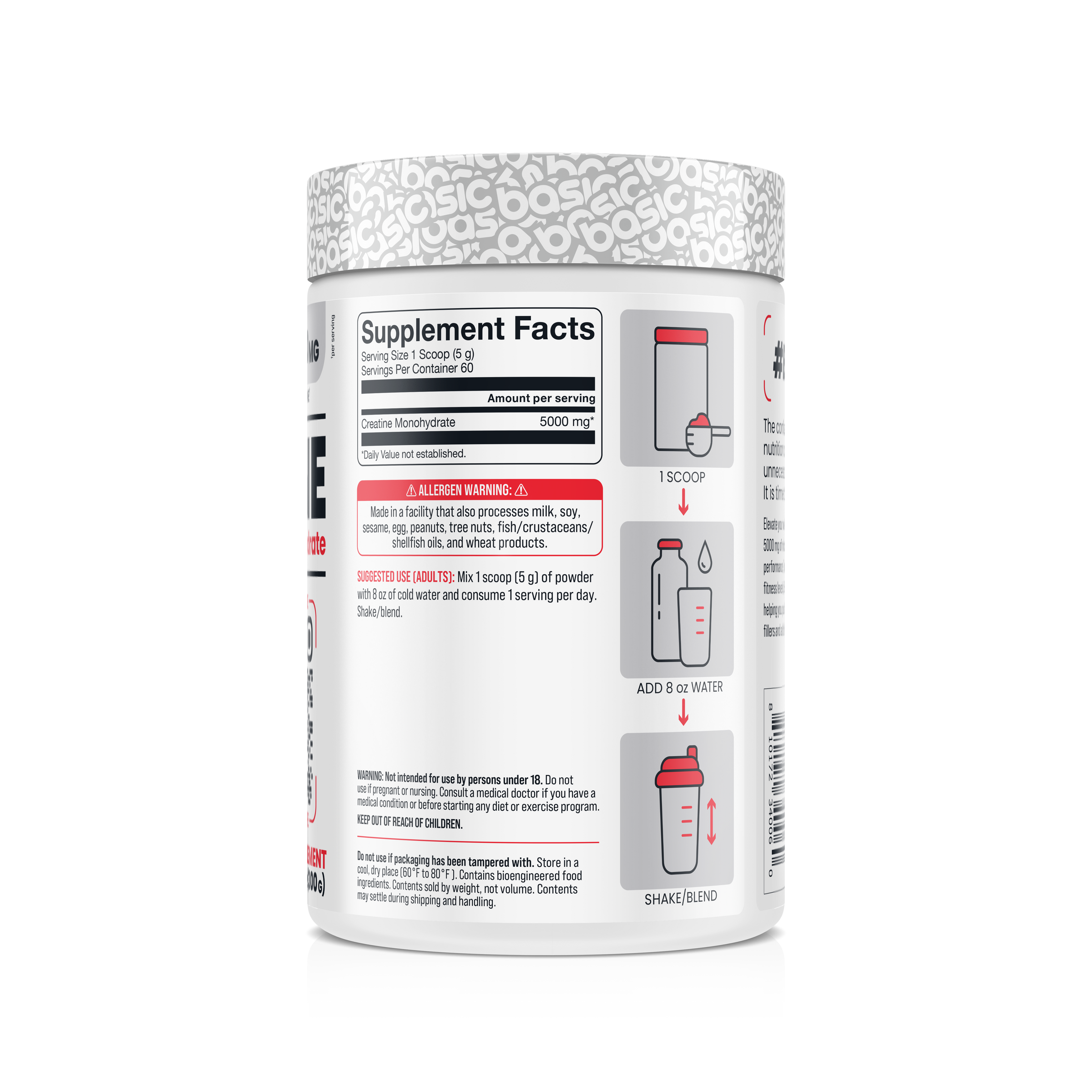 Basic CREATINE es la clave para mejorar la fuerza, la potencia y el rendimiento durante tus entrenamientos. Su fórmula de creatina micronizada asegura una rápida absorción, proporcionando a tus músculos la energía necesaria para realizar series más intensas y obtener mejores resultados. ⚡