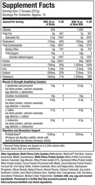 Es un hipercalórico premium, enriquecido con 80 g de proteína, 132 g de carbohidratos complejos y una dosis clínica de 10 g de creatina monohidrato, diseñado para apoyar ganancias masivas en fuerza, tamaño y recuperación muscular. Además, incluye glutamina, minerales clave y enzimas digestivas para que cada porción se convierta en puro crecimiento.